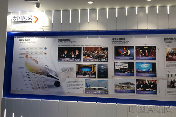 展厅面积虽小,但内容全而新。在“大国风采”板块中,从2015年由中国政府提名的柳芳当选为国际民航组织第204届理事会秘书长,到今年9月28日中国在国际民航组织第40届大会上高票连任一类理事国,都有所体现。在历史的长河中,中国民航正自信屹立于世界舞台。