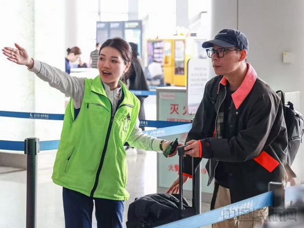 南京机场工作人员为旅客及时做好引导服务(民航华东地区管理局供图)