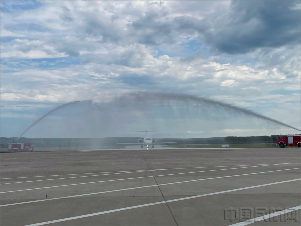 中国民航网 通讯员杨玉婷 报道:7月26日,由天骄航空ARJ21机型执飞的9D5675航班09:55从赤峰机场起飞,于11:25顺利抵达扎兰屯机场,穿过“过水门”欢迎仪式,标志着呼和浩特—赤峰—扎兰屯航线正式恢复通航,这也是天骄航空首次执飞扎兰屯航点,当日共运送旅客吞吐量143人次,平均出港客座率达85.2%。