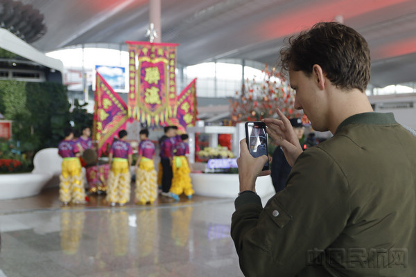 白云机场特色文化活动吸引外籍旅客拍照留念