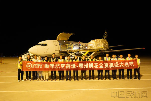 中国民航网 通讯员温禄耀 报道:4月27日凌晨00:05,由顺丰航空执飞的波音737全货机航班满载近10吨本地芍药鲜切花从山东菏泽机场起飞,于1小时后抵达湖北鄂州花湖机场,标志着菏泽机场正式开通“菏泽—鄂州”全货机鲜花航班。