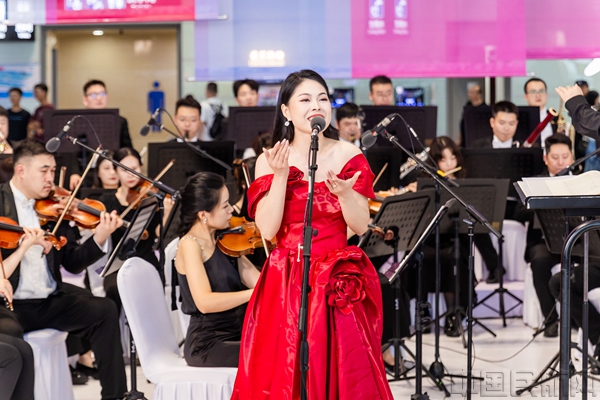 随着《歌唱祖国》旋律响起,现场的氛围被再一次点燃,全场观众齐唱“歌唱我们亲爱的祖国,从今走向繁荣富强!”,候机楼内五星红旗在人群中轻轻摇曳,宛如一片波澜壮阔的红色海洋,现场的旅客、工作人员自发地和歌手共同合唱,每个人脸上写满了幸福与自豪。带着孩子候机的李女士感慨道“很幸运能在机场遇到这么高水准的音乐会,让孩子在旅途中接受了一次生动的爱国主义教育,期待未来像这样的活动能多多举办!”