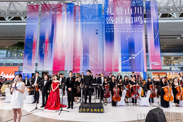 《中国民航报》、中国民航网 记者郭瑛 通讯员寇冠乔、周娟 报道:近日,由湖南机场集团与湖南出版集团、湖南演艺集团联合推出“礼赞山川·盛世和鸣”交响音乐会在湖南长沙机场温情上演。这是湖南首次实现大编制交响乐团进入机场候机大厅举行音乐会,是深化“人文机场”建设的一次创新实践,为历时3个月“三湘四水·相约湖南·市州风情周周看”画上圆满句号。