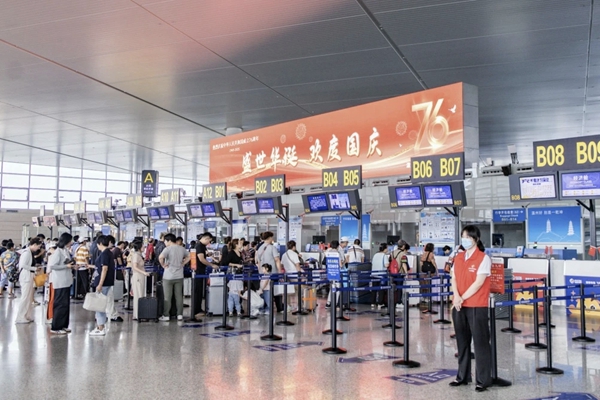 面对持续客流,温州机场围绕旅客动线推出一系列精细化服务。机场各青年党团员积极行动起来,主动报名,利用休息时间参与党员初心站志愿服务,充实一线保障力量。从问询柜台前的耐心指引,到重点关注老年人与无陪儿童,再到交通中心的精准疏导,“红马甲”的出现有效保障了出行顺畅,提升了旅客体验。