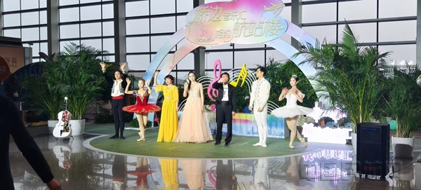 在天津滨海机场2号航站楼,天津交响乐团奏响《城里的月光》《如愿》《故乡的云》等经典曲目,天津歌舞剧院芭蕾舞团献上《唐吉诃德》《睡美人》等芭蕾选段。悠扬的旋律与优美的舞姿吸引众多旅客驻足欣赏,纷纷举起手机记录下这旅途中的美好时刻。