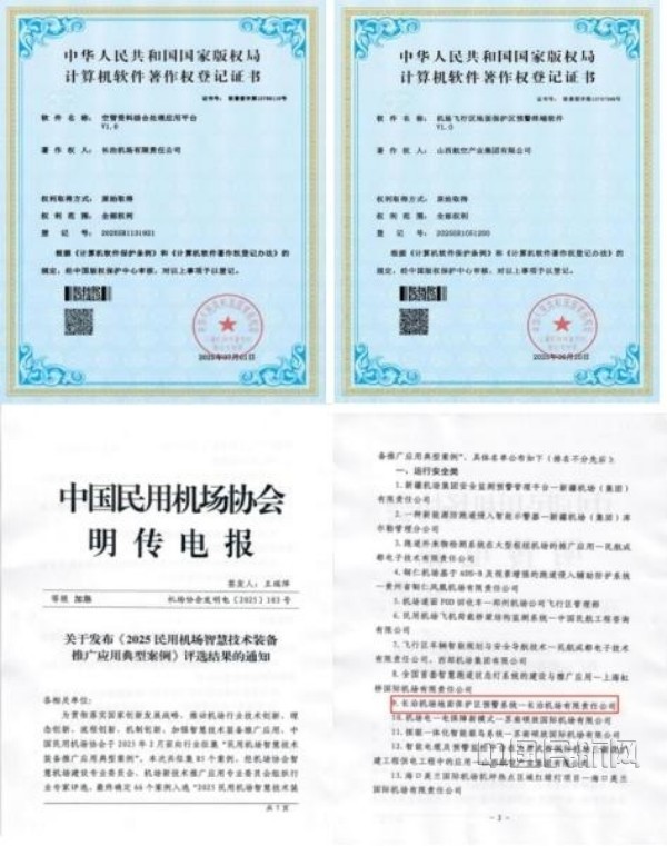 通过成立科创工作领导小组,长治机场明确各层级责任分工,定期开展科创工作专题研究,统筹推进科创项目与安全生产、运营管理、服务提升等业务深度融合。近两年长治机场空管资料综合处理应用平台、飞行区地面保护区预警系统、管制辅助指挥关键信息系统、机场飞行区草坪土壤动物靶向药剂筛选与生态治理技术研究、智航综合管理运行平台等7个项目入选集团公司科技创新项目研发计划,其中“空管资料综合处理应用平台”与“地面保护区预警系统”双双获得国家版权局《计算机软件著作权登记证书》,“地面保护区预警系统”成功入选中国民用机场协会“2025年智慧技术装备推荐应用典型案例”;同时积极联合高校开展战略合作与技术攻关,重点开发降本增效项目,今年已成功落地鸟害防治等3项科研成果,为机场运营提供技术赋能。