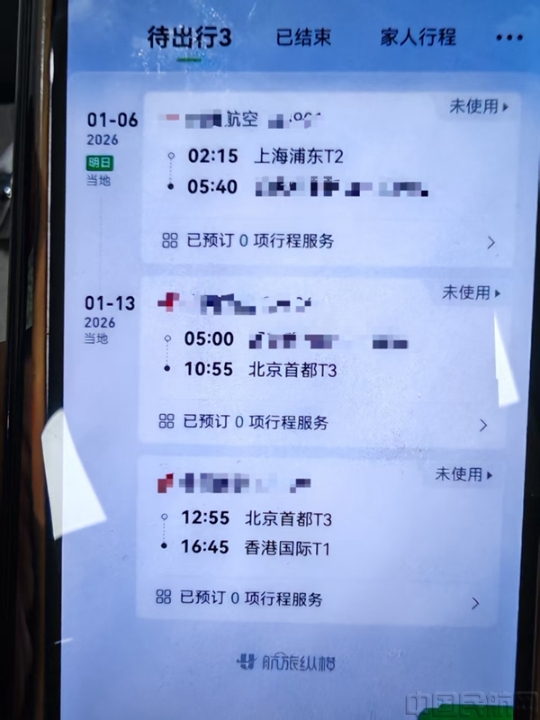 两名被诱惑的青年人,由他人代订了海外住宿和复杂的机票行程(上海机场公安供图)
