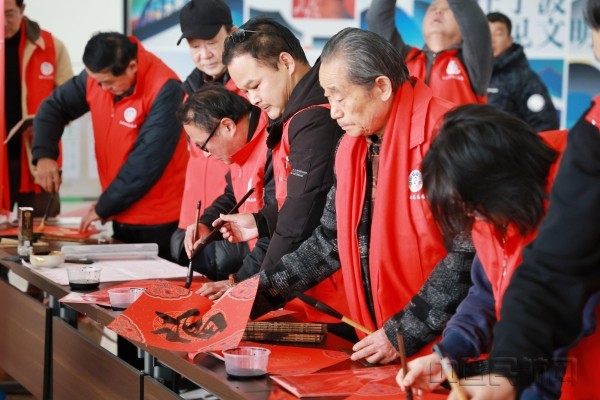 随着机器人表演落幕,另一侧由宁波机场联合海曙区文联共同举办的“金马挥毫迎骏岁、骐骥鹏程送万福”新春书法活动温馨接棒。十五位来自区文联的书法家与机场书法爱好者们齐聚一堂,挥毫泼墨,笔走龙蛇。转眼间,一个个饱满的“福”字、一副副吉祥的春联便跃然纸上,将千年文脉与美好祝愿凝结于方寸之间。