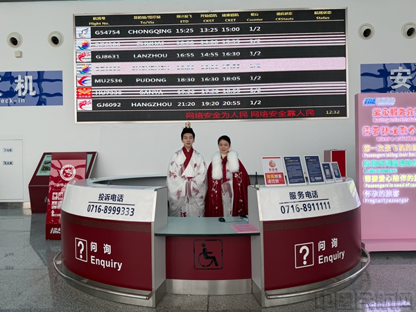 传统古韵与专业服务的碰撞,收获了过往旅客的广泛好评与驻足点赞。“一进机场就眼前一亮,工作人员的战国袍特别有特色,服务也贴心周到,真切感受到了荆州深厚的文化底蕴。”“细节拉满!环境舒适、服务贴心,小机场也能带来大大的温暖体验。”一句句真诚赞许,既是对机场战国袍特色服务的高度认可,更是对荆州机场践行文化赋能服务理念的生动诠释。