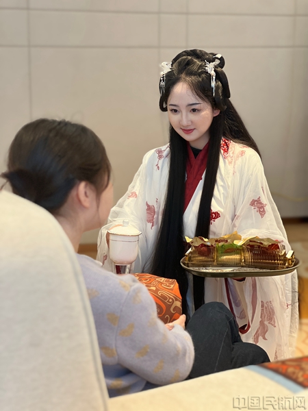 活动期间,荆州机场一楼贵宾室、二楼贵宾室及问询柜台的一线工作人员,身着典雅大气的战国袍上岗,将千年楚风礼仪与现代民航优质服务深度融合、相得益彰。问询柜台前,身着战国袍的工作人员面带微笑、主动上前,耐心为旅客解答航班资讯、指引登机路线、协助办理相关手续,用专业与热忱化解旅客出行疑虑;一、二楼贵宾室内,工作人员秉持楚礼精髓,以细致周到的服务礼仪,为旅客提供暖心茶饮、登机提醒、便捷通行等专属服务,一颦一笑间尽显楚韵礼仪之美,在一言一行中彰显民航服务匠心,让旅客在等候之余,沉浸式体验荆楚文化的独特韵味。