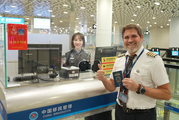 3月2日凌晨,一名外籍旅客在入境大厅显得有些焦急。“Hello! Can I help you?”海兰组民警看到这一幕后,主动上前询问,后得知这名旅客因前序航班延误,无法按原计划搭乘下一趟航班离开,又因未提前办理签证暂时不能入境。随后,海兰组民警用流利的外语为该名外籍旅客提供过境免签的政策指引,在核验护照、联程机票与行程信息后,指导填写电子入境卡,快速完成资料审核。“China Immigration , very good!”成功办理240小时过境免签手续的外籍旅客对海兰组的服务连连点赞。