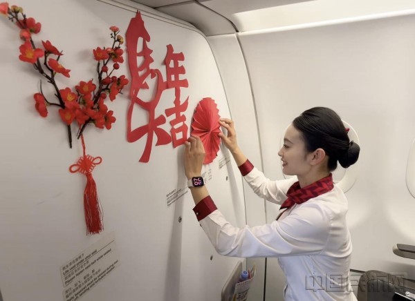 其中,春节前夕,湖南航空以“新年迎好运,换个开运色”为主题,精心布置客舱、送上承载祝福的新春礼包,让年味从登机那一刻便悄然弥漫。春节当天,“云端中国年 幸福新航程”主题活动温馨开展,乘务员为旅客发放新春心愿卡和定制纪念品,趣味问答、福袋抽奖轮番上演,欢笑声在客舱中此起彼伏,三万英尺高空的年味在云端流淌。