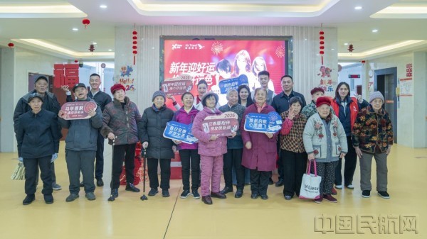 地面同样精彩。湖南航空在长沙机场T2航站楼设置“新春好运转盘”互动专区,往来旅客可以参与趣味转盘游戏,赢取春联、福字等新春小礼,为归途增添一份惊喜与暖意。此外,湖南航空还组织志愿者走进敬老院,为老人们送去新春慰问和文艺表演,将关爱延伸至社会角落,用实际行动传递航空温度。