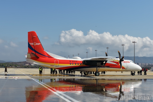 横店机场2150米跑道正式启用暨新舟60灭火飞机进驻仪式现场(记者汪洋/摄)