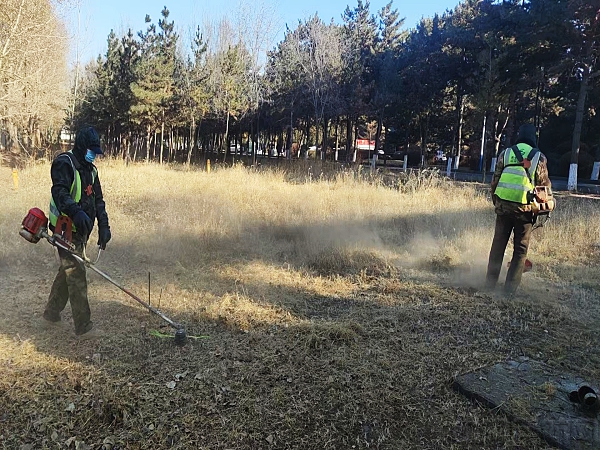 绿化人员进行杂草清理工作(呼和浩特机场供图)
