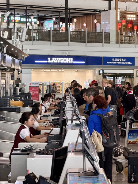 今年以来,伴随国家便利人员往来等利好政策,叠加假期影响,首都机场国际及地区客流量呈现良好增长态势。当前,首都机场国际及地区电子登机牌全流程通关服务已覆盖16家航空公司执飞的21条航线,无托运行李的旅客,可使用电子登机牌省去在值机柜台的排队时间。首都机场协同联检单位推动外国人入境卡网上填报政策在北京口岸顺利落地实施,目前90%的外国人已通过网上填报,通关效率提升30%。