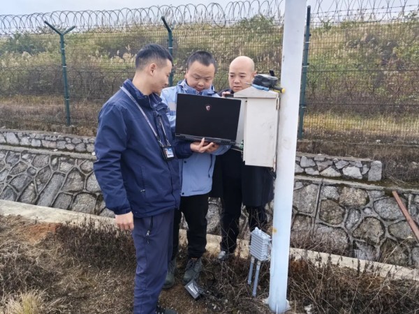 朱义昆(左二)与同事排查兴义机场监控系统(贵州民航集团供图)