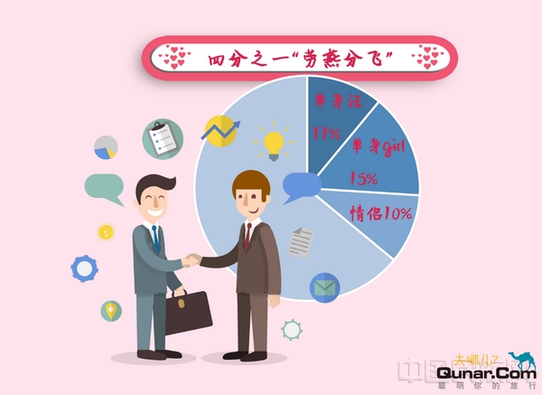今年七夕,在去哪儿平台上,有25%的人选择“劳燕分飞”。