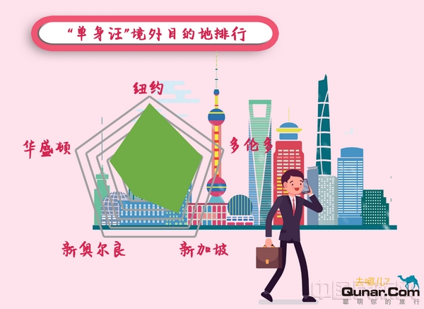 去哪儿平台上,七夕节单身男性的境外出行热门都是金融中心