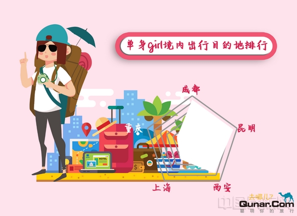 去哪儿平台上,七夕节单身女性的境内出行热门更随心