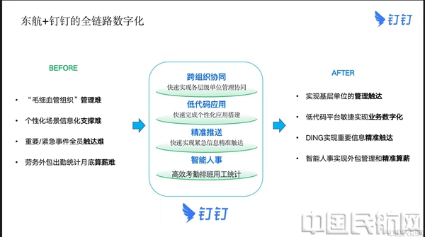 该奖项是表彰在2022年中利用钉钉实现组织数字化和业务数字化,影响和带动行业发展的优秀突出贡献企业,其中东航北京地面服务部作为东航北京分公司钉钉试点标杆部门,对数字技术的理解及实际应用,带动了整体架构的效率提升,获得数字化业内的充分认可。会上,钉钉重点对东航北京地面服务部宜搭探索构建成果进行详细介绍。