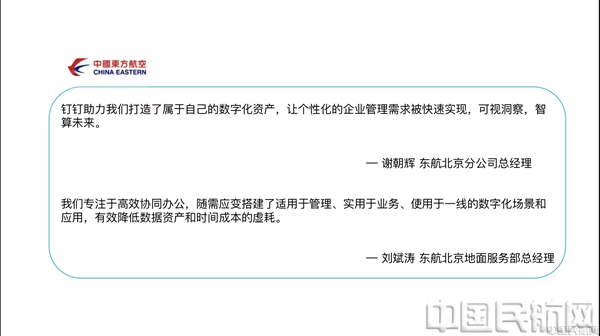 中国民航网 通讯员白敏 报道:9月21日,钉钉在杭州举办2022数字化领军企业秋季钉峰会,会上东航北京分公司作为钉钉的优秀战略伙伴,荣膺2022钉钉大基建年度数字化领先企业MAX奖。