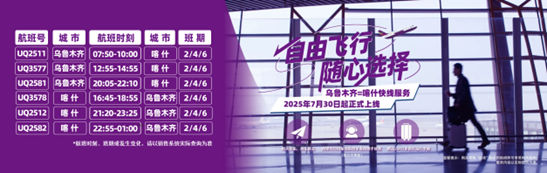 乌鲁木齐—喀什航线,是乌鲁木齐航空新疆区域重要航线之一。此次推出“乌鲁木齐—喀什”航空快线,将进一步提升乌鲁木齐航空航线运营品质,加强新疆首府乌鲁木齐与丝路重镇喀什之间的航空联系,并保障两地辐射地区的航空运输需求,为商务、旅游、探亲等旅客打造优质出行服务。广大旅客可通过乌鲁木齐航空官网、海南航空App、各大机票销售平台或拨打客服热线95334查询、购票。