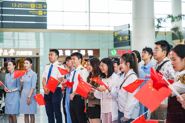 活动的最后,三家单位全体青年团员汇聚一堂,共同高歌《我爱你中国》。激昂澎湃的旋律响彻整个航站楼,在场旅客深受感染,纷纷挥舞起手中的国旗,自发加入合唱。歌声、掌声汇成一片,现场化作一片红色的海洋,浓厚的爱国激情在每个人心中激荡。