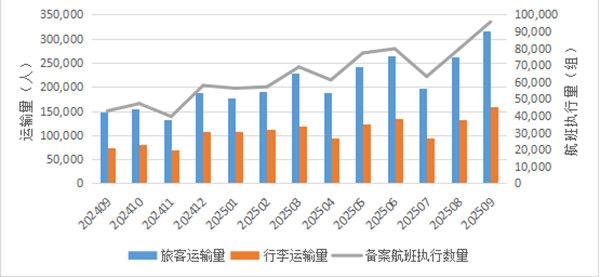 中国民航网 通讯员杨考 报道:今年前三季度,民航全行业保障享受“一次支付、一次值机、一次安检、行李直挂、全程无忧”高品质国内通程航班服务的旅客已达到209.87万人(换算旅客运输量统计口径约420万人次),延续了上半年高速增长态势。结合暑运、航文旅融合等出行热点,国内通程航班已成为提振消费、扩大内需的重要抓手,为构建全国统一大市场等国家战略落地提供有力支撑。整体来看,前三季度国内通程航班业务呈现以下几个特点。
