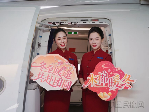 此次航班客舱内,布置了浓厚的节气氛围,主题贴纸错落点缀舱内各处,将冬至的传统韵味与南航的木棉元素巧妙融合;乘务员身着雅致的冬装旗袍,举手投足间尽显中式美学,成为客舱内靓丽的风景线。