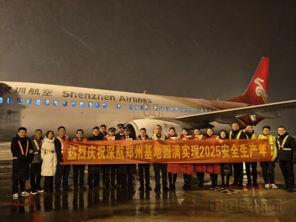 《中国民航报》、中国民航网 记者冯智君 通讯员许玲玲 报道:2025年12月31日,ZH8358航班平稳降落在郑州新郑国际机场,标志着深航郑州基地圆满完成2025年安全生产任务。基地领导班子带领各部门负责人开展岁末接机与慰问活动,为机组人员献花祝福,为基地2025“全面提升年”画上圆满句号。