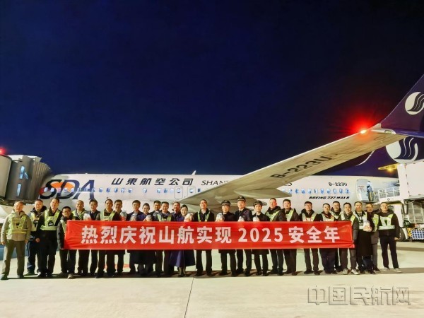 《中国民航报》、中国民航网 记者许晓泓 通讯员吴万渊、杨万卿、张烨 报道:2025年12月31日,山航集团在济南总部和各分公司、基地联合举办接机活动,庆祝顺利实现2025安全年。山航集团总裁、党委副书记苗留斌,民航山东监管局局长于苍建,民航重庆监管局副局长汪传志,山航集团副总裁王峰,山航股份总飞行师金鑫与济南机场、烟台机场、厦门机场有关负责同志在所在机场参加接机仪式。