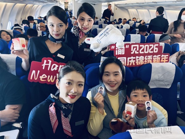 《中国民航报》、中国民航网 记者钱擘 报道:2026年1月1日,新年第一天,东航MU5429航班从上海虹桥机场出港飞往山城重庆,执行“渝见2026”元旦主题航班。