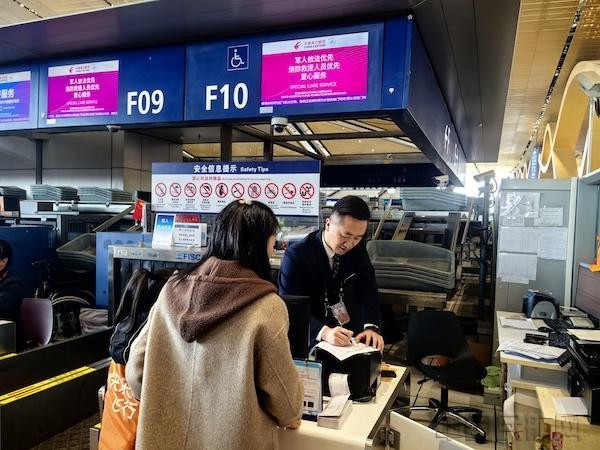 春运的地服岗位,每时每刻都在和时间赛跑。日均步行三万步是张志鹏春运期间的工作常态。2月4日上午10:15,MU5801航班开始登机,张志鹏核对旅客信息时,留意到一位老年旅客攥着登机牌面露茫然,仔细核对后发现老人的目的地与当前登机口不符。他立刻蹲下身,用平缓的语气跟老人解释清楚,全程搀扶,一路将老人护送至正确登机口。中午12:30,受航路天气影响,一趟航班突发延误,现场旅客情绪焦躁。张志鹏第一时间启动延误处置预案,一边对接区域经理统筹餐食与住宿安置,一边穿梭在旅客中间柔声安抚,带领班组成员连轴转,直到每一位旅客都得到妥善安排。18:00,爱心值机柜台迎来了晚高峰,一位到云南旅行的小伙,因脚扭伤临时申请轮椅,张志鹏立即与旅客核对信息,填写特殊旅客服务申请单,在把旅客送到登机口的路上他还热情地和小伙介绍云南景点,登机时,小伙告诉张志鹏东航的服务让他还想再来云南旅游。00:30,航站楼渐渐安静下来,张志鹏的工作手机响起:“张哥,明天MU5701有7名无人陪伴儿童,得重点盯着。”“收到,马上记下来。”挂断电话,挂断电话,他翻开随身的旅客保障录,笔尖沙沙落下,又记下了新的春运服务细节。