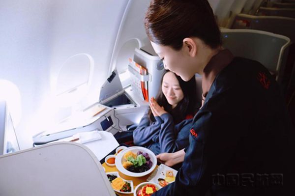 乘务员进行机上小年特色餐饮服务(海南航空供图)