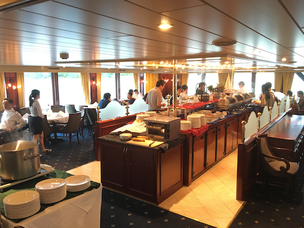 协奏曲号河轮建造于2000年,游轮长110米,宽11.4米,共有70个船舱,可容纳140余人,拥有完善的配套设施,包括阳光房、桑拿房、健身中心、图书馆、酒吧等。该轮去年由一家中国旅行社买断了部分航次,专门针对中国大陆市场,因此,河轮餐厅除了配合行程呈献沿途各地的当地美食外,还专门为中国游客准备了中式点心菜肴,每天早餐都有稀饭、馒头、花卷、包子、腐乳、酱瓜等中式餐食,满足了中国游客的味蕾需求。