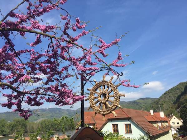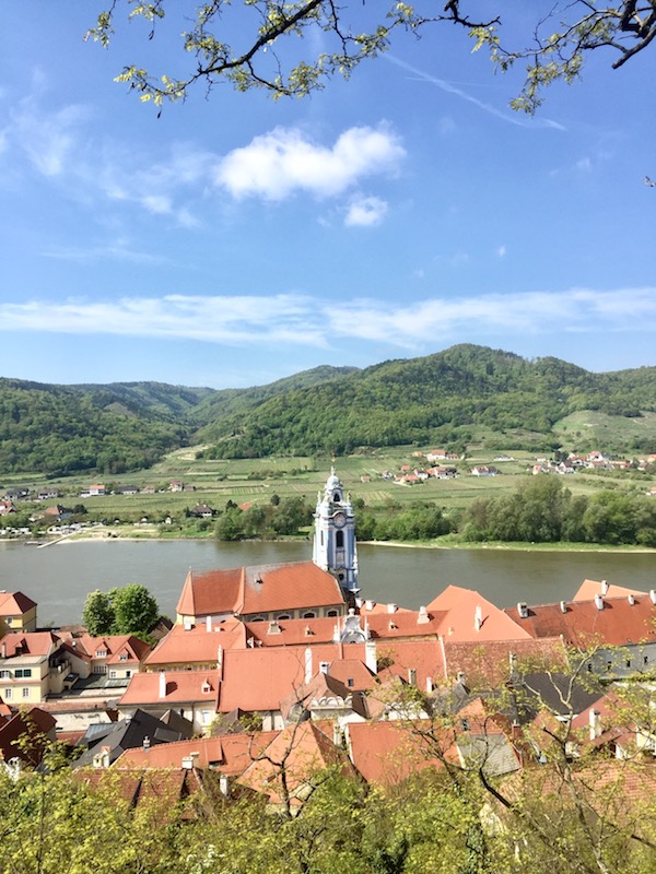第四天上午船停杜伦斯坦——号称多瑙河畔最美小镇。这座不到千人的被青山与河谷围绕的小镇已经成为瓦豪河谷的代表性画面。山顶上曾经囚禁过英国“狮心王”查理的废弃古堡、拥有蓝色钟楼的修道院、开满村庄的紫色粉色白色丁香花都成为游客心中对杜伦斯坦的永恒记忆。