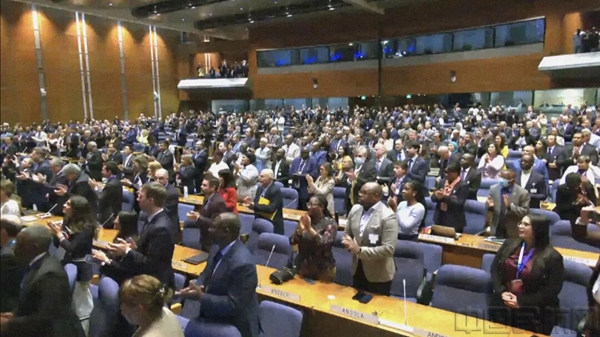 大会闭幕式现场(图为国际民航组织官方直播画面)