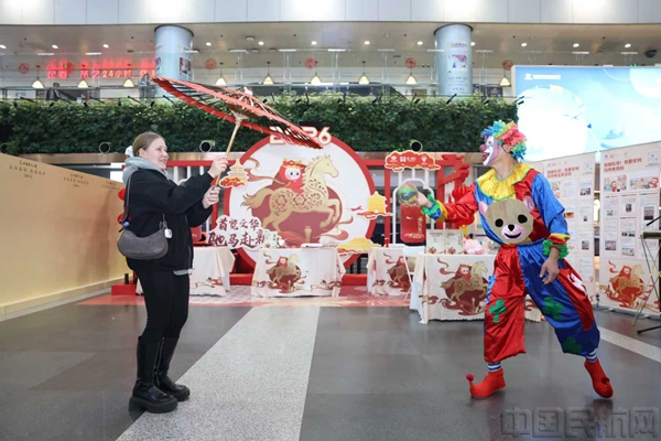 《中国民航报》、中国民航网 记者张丰蘩 通讯员徐扬 报道:春运期间,北京首都国际机场在2号、3号航站楼内开展“首览文华·驰马赴新岁”春节服务文化活动。活动将中华优秀传统文化与现代科技智慧深度融合,用科技展演、国风互动、“非遗”体验及暖心福利,为往来旅客的春运旅途注入满满年味和温情。