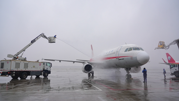 雪落无声,守护有力。飞行区内,工作人员紧盯跑道表面状况,以动态监测、科学评估、精准作业的闭环模式,开展场道除冰雪作业,为航空器起降筑牢安全屏障。同时,为高效落实航空器除防冰作业标准,机场机务人员严格执行放行检查与除防冰工作程序,精准操作除冰设备,守护旅客平安出行。