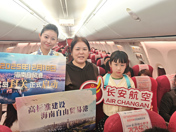《中国民航报》、中国民航网 记者李佳为 通讯员张勇、李甜甜 报道:2025年12月18日,海南自由贸易港正式启动全岛封关运作。为迎接这一历史时刻,新海航长安航空在9H8361(西安—三亚)航班上精心策划客舱主题活动,与旅客共襄盛举。